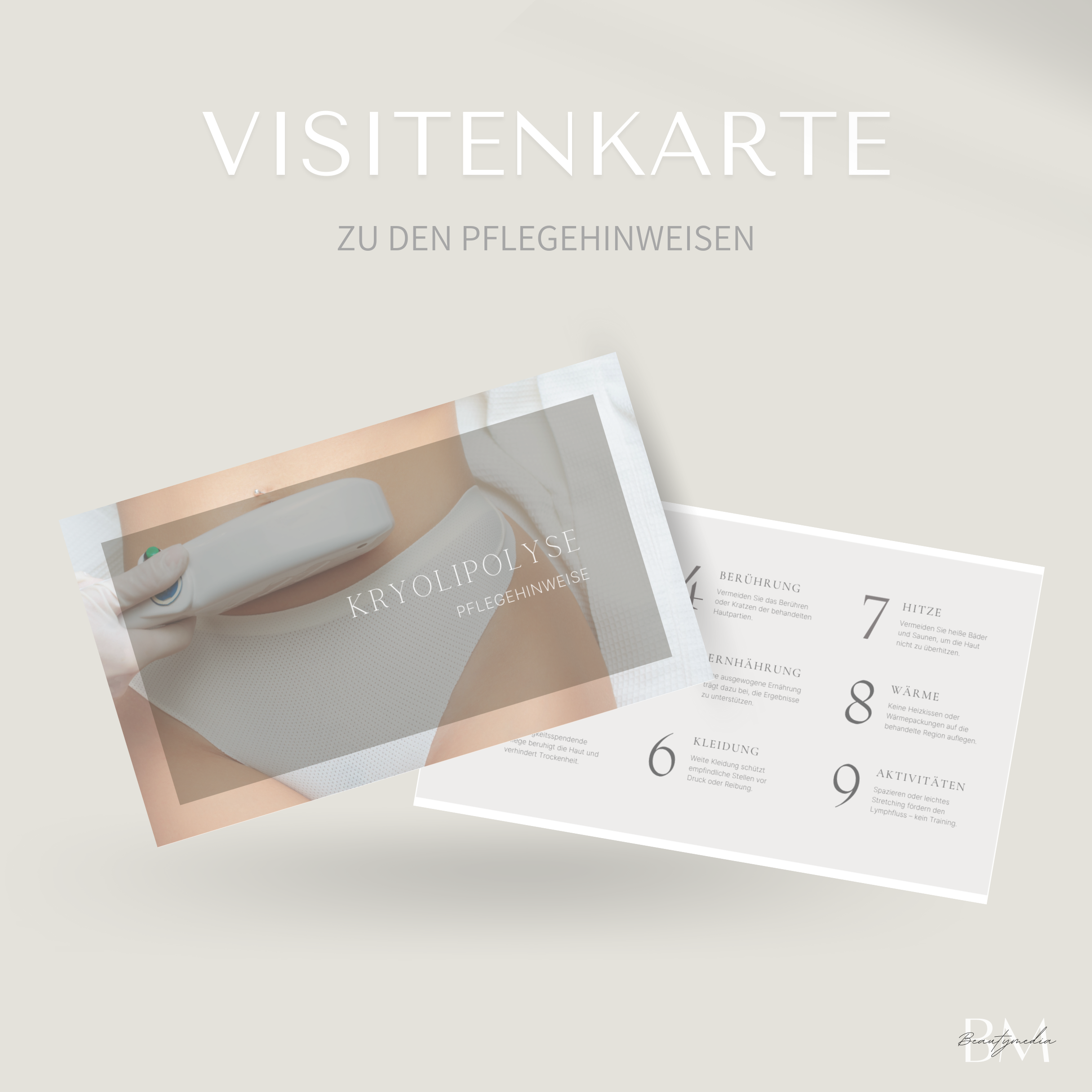 Visitenkarten-Pflegehinweis für die Kryolipolyse Behandlung